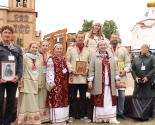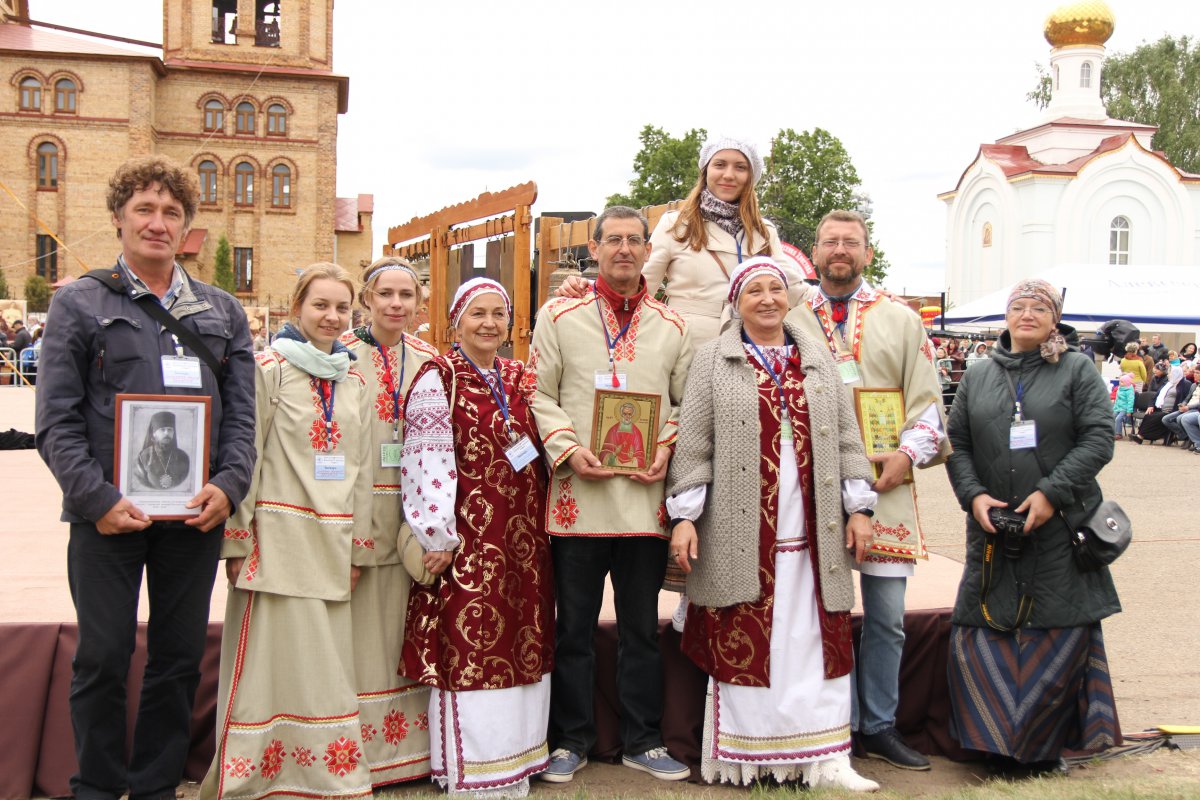 Участники из Беларуси поделились памятью о новомученниках земли белорусской и подарили настоятелю храма икону священномученика Иоанна Панкратовича пресвитера Чижевичского и Солигорского, расстрелянного советской властью в 1937 году за открытую проповедь Христа.