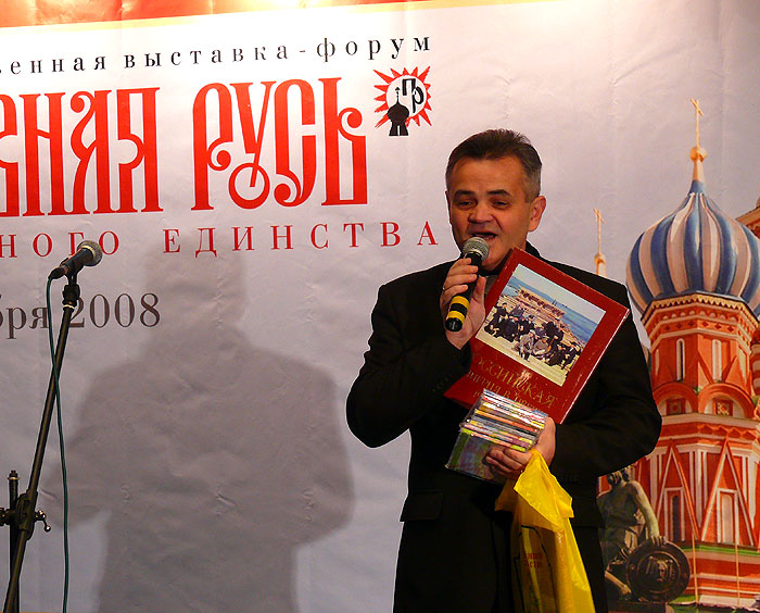 Белорусский поет и композитор Вячеслав Бобков, директор фестиваля современной христианской культуры «Благовест», выступил в московском Центральном выставочном зале «Манеж». Вячеслав Бобков представил гостям из различных епархий Русской Православной Церкви уникальный альбом фотографий «Российская империя в цвете», выпущенный Издательством Белорусского Экзархата. В завершение гала-концерта лауреатов фестиваля семейного творчества «Семья талантов», поэт и композитор исполнил свою песню «Милосердие». Написанная в к 15-летию минского Радосте-Скорбященского прихода в 2007 году, песня посвящена его настоятелю протоиерею Игорю Коростелёву. В программе концерта, который вели заслуженные деятели искусств России Евгений Качергин и Анна Шатилова, выступали как самодеятельные семейные коллективы со всей России, так и известные исполнители, такие как Народный артист России Ренат Ибрагимов. (просмотров 2200)