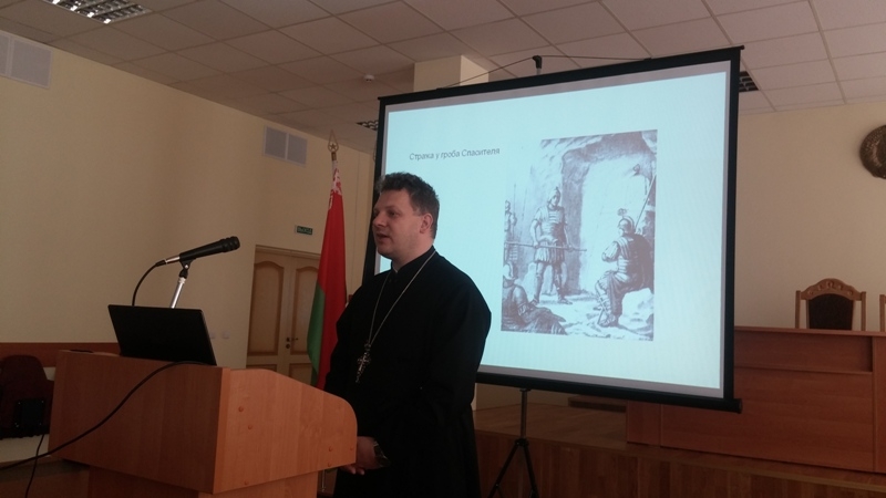 | 24 АПРЕЛЯ 2015 (Пятница) 17:41:21 Благочинный Гродненского округа протоиерей Александр Велисейчик провёл встречу с сотрудниками управления Следственного комитета по Гродненской области. Отец Александр прочитал лекцию «Пасха — праздников Праздник и Торжество из торжеств», сообщает Гродненская епархия. Лекция сопровождалась показом мультимедийной презентации. Сотрудники УСК узнали о последних днях земной жизни и о Воскресении Спасителя, об истории установления даты празднования Пасхи на Первом Вселенском Соборе и о прообразовательном значении Пасхи Ветхозаветной. Особое внимание сотрудников УСК было обращено на богословско-догматическое значение иконы «Сошествие Спасителя во ад». / sobor.by/ (просмотров 2060) |