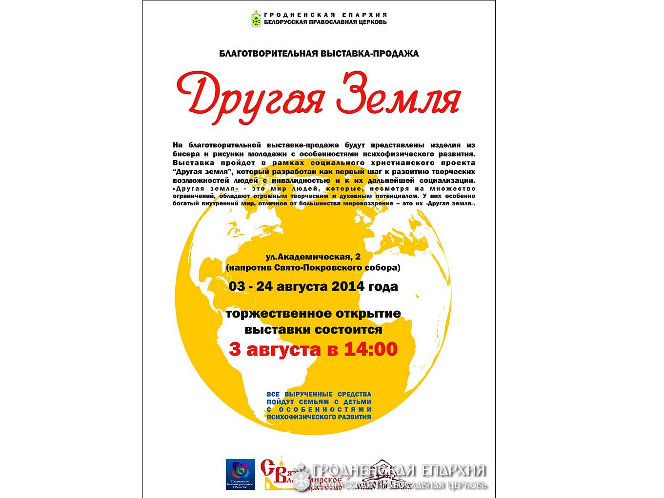 Открытие выставки состоится 3 августа, в 14.00, в актовом зале церковно-приходского комплекса Свято-Покровского кафедрального собора города Гродно (ул. Академическая 2, напротив собора). На благотворительной выставке-распродаже будут представлены изделия из бисера и художественные работы, выполненные людьми с ограниченными возможностями.