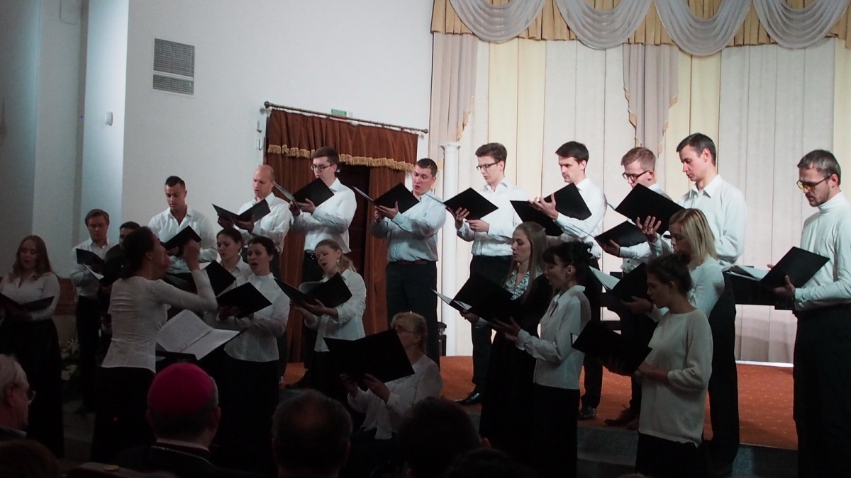 | | 17 ОКТЯБРЯ 2016 (Понедельник) 13:54:19 В стенах концертного зала "Верхний город" 16 октября состоялся концерт хоровой музыки, в котором приняли участие шесть коллективов. Организаторами мероприятия, носившего благотворительный характер, стали Христианский образовательный центр имени святых Мефодия и Кирилла и Белорусский союз музыкальных деятелей.