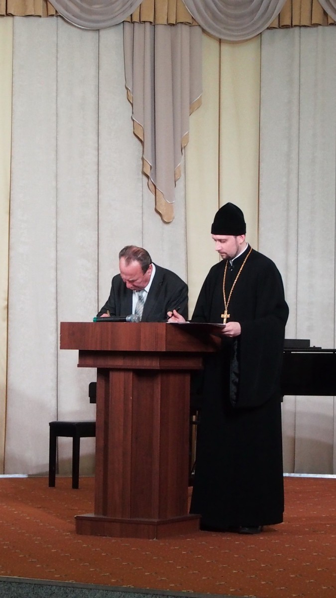 Как рассказал в интервью Sobor.by руководитель Христианского образовательного центра священник Святослав Рогальский, уже на протяжении нескольких лет союз музыкальных деятелей поддерживает многие общественные мероприятия образовательного центра и активно в них участвует. Поэтому и возникла идея организовать концерт, на котором официально был подписан договор о сотрудничестве между Христианским образовательным центром и Белорусским союзом музыкальных деятелей. Рассуждая о ценности подобного сотрудничества, отец Святослав отметил: "Это очень важно для нас, потому что такие инициативы позволяют несколько расширить стены храма, дать возможность более широкой аудитории услышать замечательные духовные песнопения, которые мы слышим в храмах и, таким образом, проповедовать о Христе словами духовных песнопений". Не менее важно и то, что концерт носил благотворительный характер, а вырученные с продажи билетов средства будут направлены на восстановление концертного рояля, который находился около 15 лет в помещении, реставрируемом сейчас при помощи образовательного центра.
