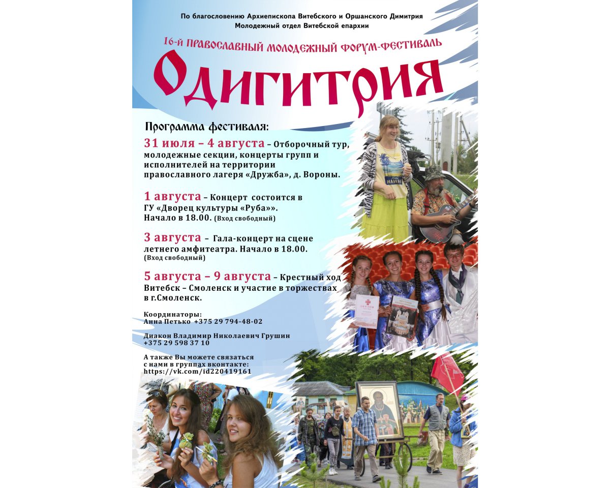 C 31 июля по 9 августа в Витебске состоится православный молодёжный фестиваль «Одигитрия»