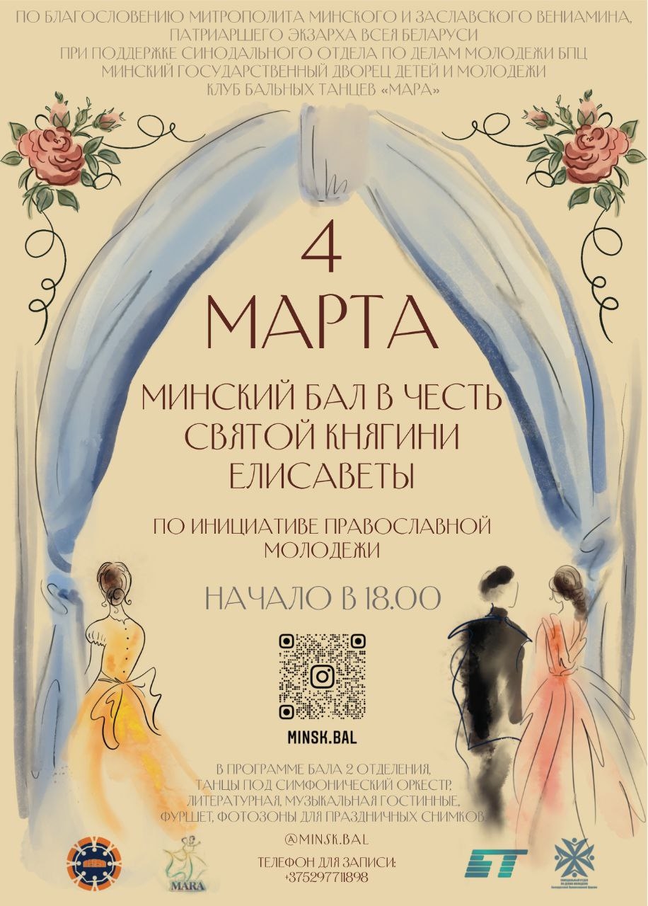 | | 11 ФЕВРАЛЯ 2022 (Пятница) 17:12:41 4 марта в Минском государственном дворце детей и молодежи состоится "Бал православной молодежи в честь святой княгини Елисаветы".