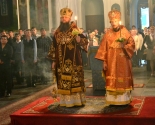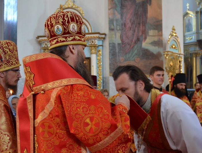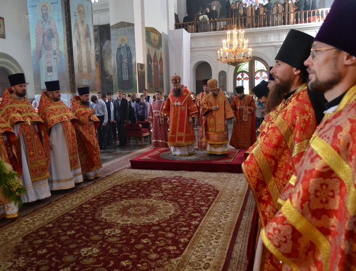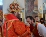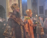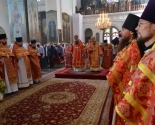 6 сентября, в день памяти преподобномученика Серафима, архимандрита Жировичского, Высокопреосвященнейший архиепископ Гурий возглавил Божественную Литургию в Свято-Успенском соборе Жировичского монастыря в сослужении Преосвященнейшего епископа Вениамина, духовенства Новогрудской епархии, преподавателей Минских Духовный школ и братии обители в священном сане. «Cегодня мы прославляем угодника Божия преподобномученика Серафима за то, что он возлюбил Господа, по Заповеди Евангельской -- всем сердцем, всею душею, всею мыслию. О его жизни немного известно, но те сведения, которые дошли до нас, говорят о том, что он понес великий подвиг ради проповеди Евангелия, за что и причислен к лику святых, -- отметил Владыка Гурий в проповеди. -- Сейчас мы живем в то благодатное время, когда можем свободно посещать храм, молиться, говорить о Боге, участвовать в Святых Таинствах и иметь надежду на спасение. Но каждый из нас должен взращивать в сердце своем любовь ко Господу, стремление жить по-христиански и готовность, если потребуется, живот свой положить за веру православную, за Слово Божие. Вот этому нам всем и нужно учиться у святых, в числе которых преподобномученик Серафим, архимандрит Жировичский…», – сказал в Свято-Успенском соборе с правящий Архиерей после крестного хода с иконой преподобномученика Серафима. Крестный ход состоялся по окончании Божественной Литургии к Явленскому храму, где был отслужен молебен с акафистом святому. На Божественной Литургии владыке Архиепископу сослужили: Преосвященнейший Вениамин, епископ Борисовский, викарий Минской епархии; первый помощник ректора архимандрит Никодим (Генералов), духовенство Новогрудской епархии, преподаватели Духовных школ и братия обители в священном сане. На Малом входе во внимание к усердным трудам во славу Матери-Церкви Его Высокопреосвященство, Высокопреосвященнейший архиепископ Гурий наградил протоиерея Вячеслава Пашкевича (Ивьевское благочиние) правом ношения палицы, а священника Георгия Савицкого (Островецкое благочиние) возвел в сан протоиерея. За Богослужением пел мужской хор Духовных Академии и семинарии под управлением протодиакона Андрея Скробота. 5 сентября, накануне дня памяти преподобномученика Серафима, архимандрита Жировичского, Управляющий делами Белорусской Православной Церкви, ректор Минских Духовных Академии и семинарии архиепископ Новогрудский и Лидский Гурий возглавил Всенощное бдение в Свято-Успенском соборе Жировичского мужского монастыря. / sobor.by/по материалам сайта Новогрудской епархии (просмотров 7354)