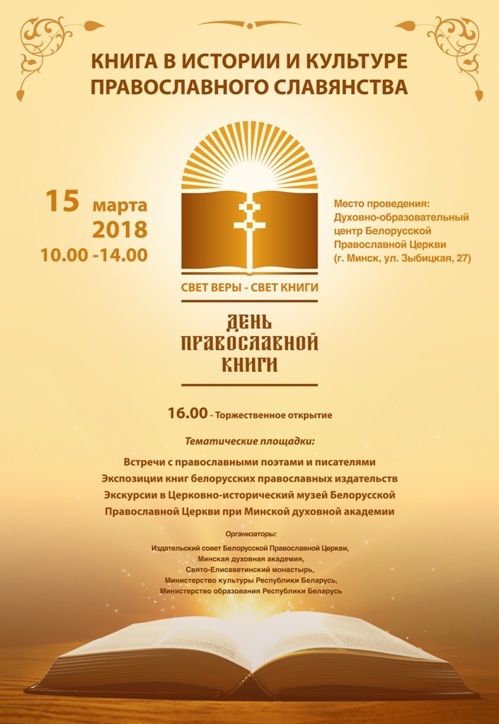 | 20 ФЕВРАЛЯ 2018 (Вторник) 10:30:03 15 марта в Духовно-образовательном центре Белорусской Православной Церкви состоятся торжества, приуроченные к празднованию Дня православной книги.Мероприятия пройдут с 10:00 до 14:00. В программе: • экскурсии в Церковно-исторический музей Белорусской Православной Церкви при Минской духовной академии; • встречи с православными поэтами и писателями — авторами новых книг, вышедших в издательствах Белорусского Экзархата; • экспозиции книг белорусских православных издательств, которые представят свои новинки детской литературы, православных художественных изданий, творений святых отцов и учителей Церкви, а также катехизических духовно-просветительных книг. Торжественная часть праздника начнётся в актовом зале Минской духовной академии в 16:00. Мероприятие возглавит митрополит Минский и Заславский Павел, Патриарший Экзарх всея Беларуси. В числе приглашённых гостей — священнослужители, представители государственной власти, министерств, главы и сотрудники дипломатических миссий, аккредитованных в Республике Беларусь, ректоры высших учебных заведений, учащиеся духовных школ, иных учебных заведений Беларуси и др. Вход на торжественный акт — по пригласительным билетам. На все остальные мероприятия Дня православной книги вход свободный. Празднование Дня православной книги в Белорусской Православной Церкви стало уже традицией. Учреждение праздника приурочено к дате издания "Апостола" печатниками диаконом Иваном Федоровым и Петром Мстиславцем. Эта первая в Русском царстве датированная книга вышла в свет 14 марта 1564 года. День православной книги знаменует признание огромного значения духовной литературы в нравственном воспитании людей, в приобщении их к тысячелетней христианской традиции. Мероприятия, приуроченные к этому событию, проходят в марте во всех епархиях Белорусского Экзархата, в публичных и церковных библиотеках, средних и высших учебных заведениях республики, а также духовных школах Белорусской Православной Церкви. Для Беларуси в нынешнем году это событие связано с 220-летием со дня рождения и 150-летием со дня блаженной кончины митрополита Литовского и Виленского Иосифа (Семашко), деятельность которого способствовала развитию белорусской культуры и белорусского национального самосознания, становлению белорусской государственности. Организаторы мероприятия: Издательский совет Белорусской Православной Церкви, Минская духовная академия, Свято-Елисаветинский монастырь, Министерство культуры и Министерство образования Республики Беларусь. Место проведения: Минск, Духовно-образовательный центр Белорусской Православной Церкви, ул. Зыбицкая, 27./ sobor.by/ По материалам church.by (просмотров 3241) |