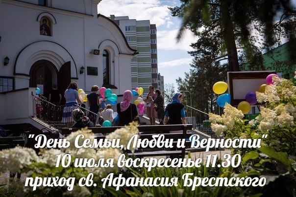 | | 8 ИЮЛЯ 2016 (Пятница) 11:32:53 10 июля в на базе минского прихода святого Афанасия Брестского состоится семейный праздник, посвящённый дню памяти святых благоверных Петра и Февронии Муромских. Праздник начнётся в 11.30 после Божественной литургии.
