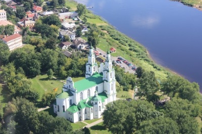 После торжественного молебна архиепископ Феодосий в машине с открытым верхом провёз святыню по улицам Полоцка, благословляя город и его жителей. На подъезде к Спасо-Евфросиниевскому монастырю святыню встретили сёстры обители во главе с настоятельницей игуменьей Евдокией. После молебна в Крестовоздвиженском соборе обители глава греческой делегации митрополит Керкирский, Паксийский и Диапонтийских островов Нектарий приложился к мощам святой преподобной Евфросинии Полоцкой, после чего греческого гостя сопроводили в древний Преображенский храм. Там в правой части алтаря он смог увидеть раскрытую реставраторами фреску с изображением святителя Спиридона, которая датируется 12 веком.