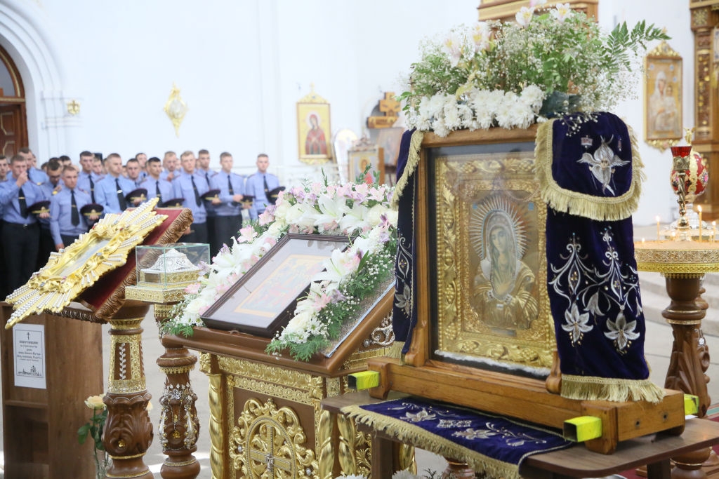 В Минске правоохранители посетили молебен в Храме в честь иконы Божией Матери "Всех скорбящих Радость". Божественная литургия состоялась по случаю принесения православных святынь - Годеновского креста и Жировичской иконы Божией Матери