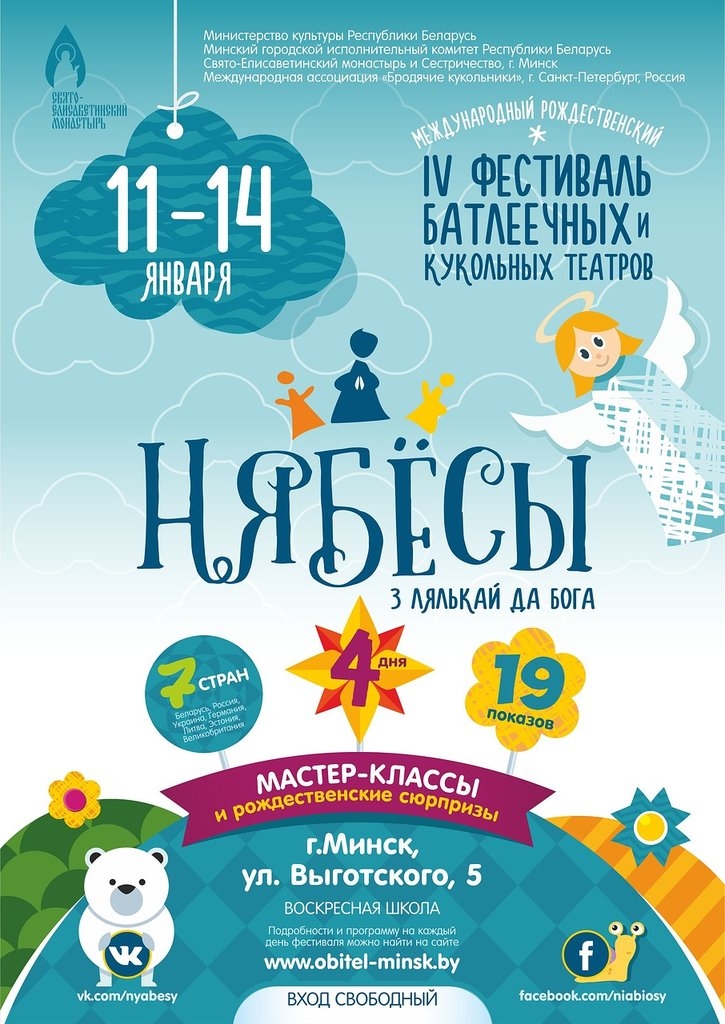| 26 ДЕКАБРЯ 2017 (Вторник) 13:02:19 V Международный Рождественский фестиваль батлеечных и кукольных театров "Нябёсы" проходит по благословению митрополита Минского и Заславского Павла, Патриаршего Экзарха всея Беларуси. В Образовательном центре Свято-Елисаветинского монастыря соберутся лучшие батлеечные и кукольные театры из 7 стран: Беларуси, России, Литвы, Эстонии, Великобритании, Германии и Украины.Як мінская моладзь дорыць радасць дзецям гульнёй ценю и святла >>> Для участия в конкурсной программе отобрано 18 коллективов. В умелых руках батлеечных и кукольных мастеров сказочные персонажи оживут и познакомят зрителей с удивительным миром волшебства, добра и благодушия. Мероприятие по традиции проходит в период рождественских святок, когда повсюду царит особая атмосфера красоты и милосердия. Церемония открытия фестиваля "Нябёсы" состоится в четверг, 11 января, и начнётся в 10.00 в актовом зале Образовательного центра при Свято-Елисаветинском монастыре. Подход прессы состоится в этот же день, чуть раньше - в 9.20 в холле воскресной школы Свято-Елисаветинского монастыря. В роли спикеров выступят организаторы мероприятия. Международный Рождественский фестиваль батлеечных и кукольных театров "Нябёсы" входит в Программу сотрудничества между Министерством культуры Республики Беларусь и Белорусской Православной Церковью на 2018-2021 годы. Идею фестиваля "Нябёсы" отражает традиционный слоган – "З лялькай да Бога". С помощью добрых и красочных батлеечных представлений участники мероприятия помогают зрителям стать к Богу ещё ближе, увидеть прекрасное, вечное, истинное сквозь призму кукольного мира. Атмосферу мероприятия отражает и девиз IV Международного фестиваля "Нябёсы" – "Куклы дарят радость!". Цели фестиваля – развитие традиционного батлеечного и кукольного театрального искусства, укрепление международных культурных связей, приобщение к театральному искусству подрастающего поколения и поддержка одарённой молодёжи. Содействие в проведении фестиваля оказывает Министерство культуры Республики Беларусь и Минский городской исполнительный комитет. Учредителями мероприятия являются Минская епархия, Свято-Елисаветинский монастырь, Сестричество в честь св. прпмчц. Елисаветы. Художественный руководитель фестиваля — актёр НАДТ им. М. Горького Александр Жданович. Представленные спектакли будет оценивать профессиональное жюри — актёры, театральные критики, научные деятели и искусствоведы. Победителей определят в следующих номинациях: "За лучший спектакль" (Гран-при фестиваля), "За лучший дебют", "За лучшее раскрытие духовно-нравственного содержания спектакля", "За лучшее актёрское исполнение" и др. Помимо насыщенной конкурсной программы в период проведения фестиваля для зрителей будут организованы тематические круглые столы, выставки и творческие встречи. Самые юные гости смогут не только увидеть сказочные представления, но и попробовать себя в роли кукольников, художников и ремесленников на занимательных мастер-классах. Ежегодно Международный Рождественский фестиваль "Нябёсы" выполняет благотворительную миссию. Для людей, особенно нуждающихся в батлеечном и кукольном искусстве, проходит благотворительная акция "Свет души — добродетель", ставшая традиционной. Акция стартовала ещё до начала мероприятия. Кукольные мастера 