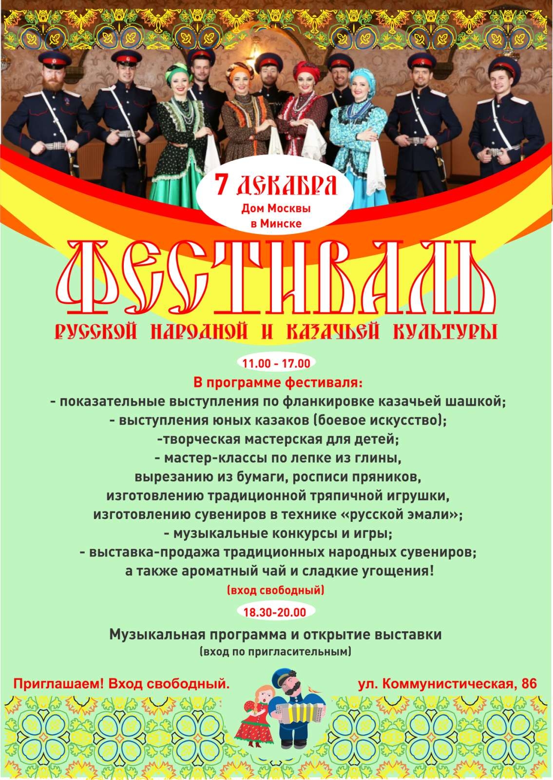 7 декабря в столичном Доме Москвы состоится фестиваль русской народной и казачьей культуры.