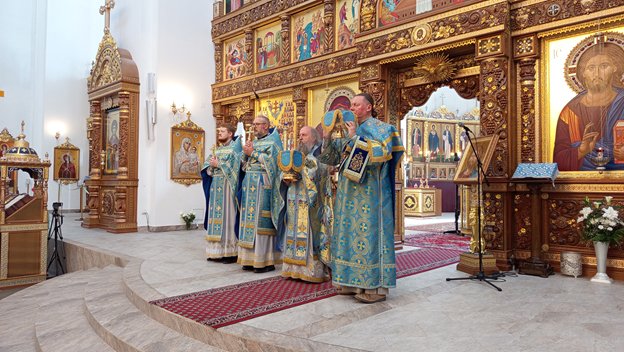 | Серия репортажей о жизни прихода иконы Божией Матери "Всех скорбящих Радость" города Минска. В фоторепортажах будет отражаться жизнь прихода, в первую очередь, соборная молитва, будут публиковаться фотографии, сделанные в храме и вне его стен. В объективе - весь храмовый комплекс, построенный в память о жертвах Чернобыльской катастрофы. В соборе иконы Божией Матери "Всех скорбящих Радость" были совершены две праздничных Божественных литургии. Раннюю Божественную литургию в 7:00 совершил священник Антоний Бондарев и протодиакон Димитрий Романович. Позднюю Божественную литургию в 10:00 возглавил настоятель храма протоиерей Игорь Коростелёв в сослужении ключаря храма протоиерея Виктора Якушева, священника Павла Галакова и протодиакона Ярослава Близнюка. |