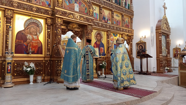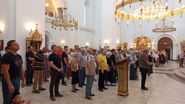 | Вечером в 17:00 в Радосте-Скорбященском соборе был совершён молебен на начало нового учебного года. На молебне молились школьники и студенты и их родители. Священник Сергий Пыск поздравил присутствующих на молебне с Днём знаний, благословил крестом и окропил учащихся и их родителей святой водой. |