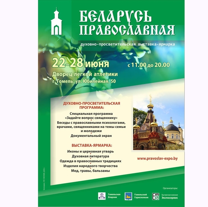 | 19 ИЮНЯ 2013 (Среда) 11:24:47 С 22 по 28 июня в Гомеле пройдет духовно-просветительская выставка-ярмарка «Беларусь Православная». Экспозиция развернётся во Дворце легкой атлетики и будет работать с 11.00 до 20.00.Официальное открытие выставки начнется в 13.00 молебном «Перед началом доброго дела» у иконы великомученицы Анастасии Узорешительницы, которая, по благословению епископа Гомельского и Жлобинского СТЕФАНА, будет принесена на выставку для поклонения верующих. Выставка соберет около 50 участников из России, Украины, Беларуси, Молдовы и Греции. Это православные монастыри, приходы, издательства, мастера и художники, которые представят свою продукцию: святыни монастыря, иконы, церковную утварь и облачения, духовную литературу, аудио-видео продукцию, керамику, гжельский фарфор, оренбургские платки, палантины, изделия из льна, мед, травы и бальзамы. Также можно будет получить консультацию фитотерапевта и пчеловода. У посетителей будет возможность подать записки о здравии и упокоении своих родных и близких в разные уголки Беларуси, России, Украины, Молдовы и на Святую Гору Афон. На выставке для взрослых и детей будет организована духовно-просветительская программа, в рамках которой пройдут следующие мероприятия: С 22 по 27 июня в 18.30 состоятся авторские встречи с режиссером, членом Союза писателей РФ и редколлегии журнала «Русский дом» Юрием Воробьевским на которых будут представлены литературные и киноновинки, интересные рассказы и уникальные съемки о Святой Горе Афон и ее старцах, о доме Романовых и многое другое. 22 июня в 14.00 состоится Презентация братства во имя Святых Царственных Страстотерпцев (г.Гомель) и мероприятия «Бал православной молодежи». 23 июня в 17.00 и 24 июня в 15.30 пройдут лекции руководителя миссионерского отдела Гомельской епархии протоиерея Артемия Кривицкого на актуальнейшие духовные темы современности. 24 июня в 17.00 состоится программа «Святая земли белорусской» о жизни и молитвенном подвиге блаженной Валентины Минской. 25 июня в 13.00 - Беседа-лекция на тему «О любви и браке. Отношения в семье» с психологом Людмилой Логуновой. Мероприятие рассчитано на молодых людей вступающих во взрослую жизнь. В 14.30 - юбилейная программа, приуроченная к 750-летию преставления святого благоверного князя Александра Невского. 26 июня в 14.00 пройдет юбилейная программа, приуроченная к 1025-летию крещения Руси. 27 июня в 13.00 К 1150-летию создания славянской азбуки будет продемонстрирован мультипликационный фильм для детей «Азбука церковнославянская» (г. Минск). в 15.30 - презентация братства православных медиков прп. Манефы (г. Гомель). в 18.00 - юбилейная программа, приуроченная 400-летию Дома Романовых. Выступление казачьих ансамблей придадут праздничный колорит мероприятиям, а художественная галерея янтарной иконописи в рамках выставки ещё раз подтвердит богатство Православной культуры. Также на выставке будут отслужены праздничные молебны в День Святой Троицы 23 июня в 14.00 и в День Святого Духа 24 июня в 14.00. / sobor.by/ (просмотров 11568) |