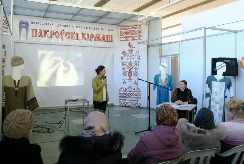| 19 ОКТЯБРЯ 2016 (Среда) 13:53:09 18 октября в рамках работы православной выставки-ярмарки “Пакроўскі кірмаш” с аншлагом состоялась большая авторская программа руководителя народной студии декоративно-прикладного искусства Дворца культуры железнодорожников Валентины Ивановны Житкевич “Рукоделие – свет родников чистых”. Красочный презентационный видеофильм представил посетителям выставки 34-летнюю историю существования студии, лучшие работы её мастеров, кадры программ Белтелерадиокомпании и телеканала "Столичное телевидение" с участием Валентины Житкевич. Он позволил окунуться в дружескую и увлечённую кропотливой работой атмосферу студийных занятий. На этом фоне по-особому трогательно звучал взволнованный рассказ народной мастерицы об истоках возникновения рукоделия, о библейских преданиях, связанных с ним. Затаив дыхание, впитывали посетители “Пакроўскага кірмаша” исторические свидетельства о культе рукоделия в семьях Петра Столыпина и императора Николая II, о том, как в эмиграции представители рода Романовых выживали благодаря творениям своих рук. Как подчеркнула Валентина Житкевич, в 18-19 веках для женщин богатого сословия не было настоящей необходимости заниматься рукоделием, однако считалось дурным тоном, если девица не умела вышивать. И даже на балах модницы щеголяли с прелестными ридикюлями с рукоделием внутри. Такое возвышенное отношение к рукоделию подтверждала подготовленная организаторами программы галерея репродукций великолепных картин известных русских художников, которые в самой трогательной манере представляли женщину за вышивкой. Во время Великой Отечественной войны вышитые любимыми платки и кисеты становились настоящими оберегами для солдат, согревали их душу воспоминанием о семье. Настоящим открытием для посетителей выставки стало огромное количество серьёзных заболеваний, для облегчения которых рекомендуется определённый вид рукоделия. Обращаясь к эстетике наших дней, Валентина Житкевич обратила внимание посетителей “Пакроўскага кірмаша” на огромное влияние западной культуры на современную манеру одеваться в рваные джинсы, кофточки с неровным краем, делать небрежные причёски. По её мнению, несвойственное славянам отрицательное эстетическое влияние популяризирует отклонение от определённой, веками заложенной нормы, и нравственно развращает молодёжь. Способствует этому разобщённость поколений, которую успешно помогает преодолеть именно рукоделие. Как оказалось, в студии декоративно-прикладного искусства ДКЖ занимаются люди в возрасте от 12 до 80 лет. Многие посещают её уже больше 20 лет. Одна из "старожилов" студии Татьяна Аникитченко отметила, что тесное доброжелательное общение и кропотливая совместная работа позволяют перенимать опыт старших поколений, учат терпению и смирению, умению по-доброму доказать свою точку зрения. По её словам, рукоделие – это вполне реальная возможность оторвать малышей от вредоносных гаджетов, развивать у них мелкую моторику и творческое воображение, прививать с детства правильный эстетический вкус. Ещё одна "долгожительница" студии и лучшая её мастерица Надежда Ожигина обратила внимание посетителей “Пакроўскага кірмаша” на влияние яркого лоскутного шитья на грудных малышей, которые воспринимают мир через цветоощущения. По её мнени