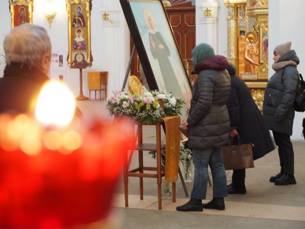 Не иссякал поток верующих желающих помолиться блаженной Матроне Московской у её святых мощей в течении всего дня.