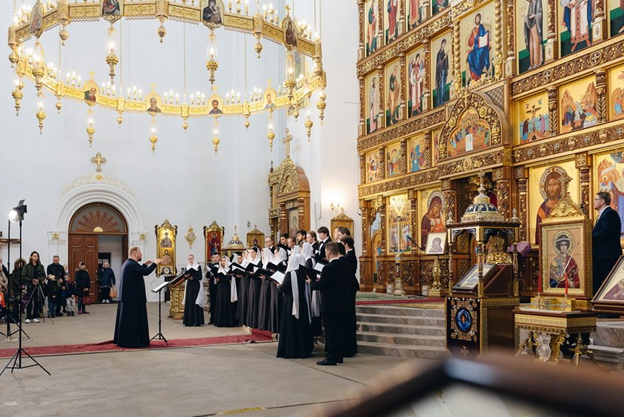 | 1 апреля концерт прошел в храме иконы Божией Матери "Всех скорбящих Радость". Выступили: - Праздничный хор храма иконы Божией Матери "Всех скорбящих Радость", - Народная хоровая капелла "Ранiца" Национального центра художественного творчества детей и молодежи, - Концертный хор Минского государственного музыкального колледжа имени М. И. Глинки, - Архиерейский хор минского Свято-Духова кафедрального собора, -Заслуженный коллектив Республики Беларусь Государственная академическая хоровая капелла Республики Беларусь им. Г. Ширмы. 2 апреля в храме иконы Божией Матери "Всех скорбящих Радость" города Минска состоялся хоровой концерт "Песнопения Великого поста. Время покаяния" с участием детско-юношеских хоров. Выступали: - Хор мальчиков и юношей имени И. А. Журавленко, - Детско-юношеский хор Всехсвятского прихода Минска, - Детско-юношеский хор "Встреча" прихода иконы Божией Матери "Всех скорбящих Радость" города Минска, - Детский хор Свято-Елисаветинского монастыря, - Заслуженный коллектив Республики Беларусь Государственный камерный хор. Художественный руководитель, народная артистка РБ Наталья Михайлова. Все эти коллективы объединяет профессионализм и слаженность исполнения. Прихожане и гости получили духовную радость и силы на продолжение Великого поста. Архиерейский хор минского Свято-Духова кафедрального собора. Регент Виталий Соболевский. |
