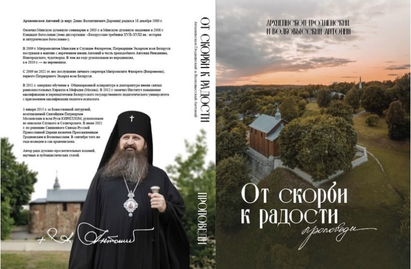 В издательстве «Астер Плюс» (Россия, город Пермь) вышла книга архиепископа Гродненского и Волковысского Антония (Доронина) «От скорби к радости». Издание объемом 432 страницы рекомендовано к публикации Издательским советом Белорусской Православной Церкви и приурочено к 125-летию Гродненской епархии.