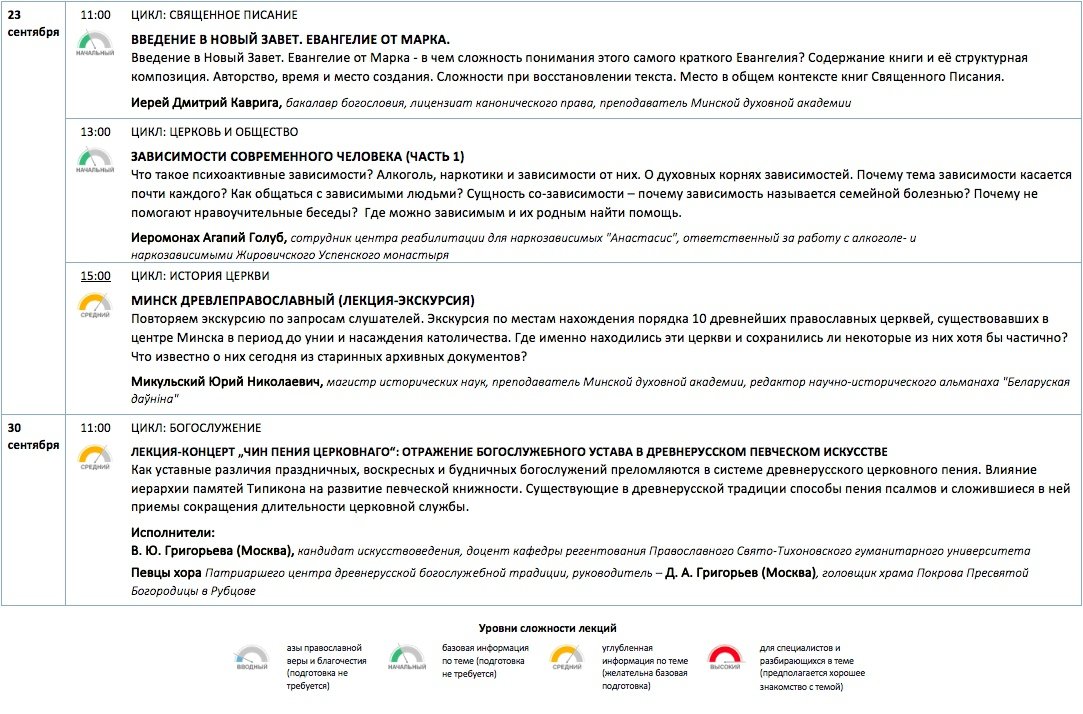 Во второй половине сентября просветительские курсы "Свет Православия" при Минской духовной академии приглашают на новые лекции из циклов "Священное Писание", "История Церкви" и "Богослужение". Описание лекций смотрите ниже. Приглашаются все желающие! Вход свободный.