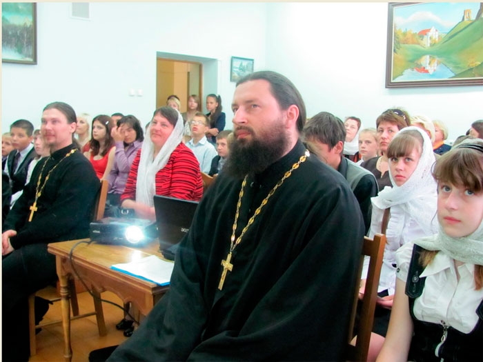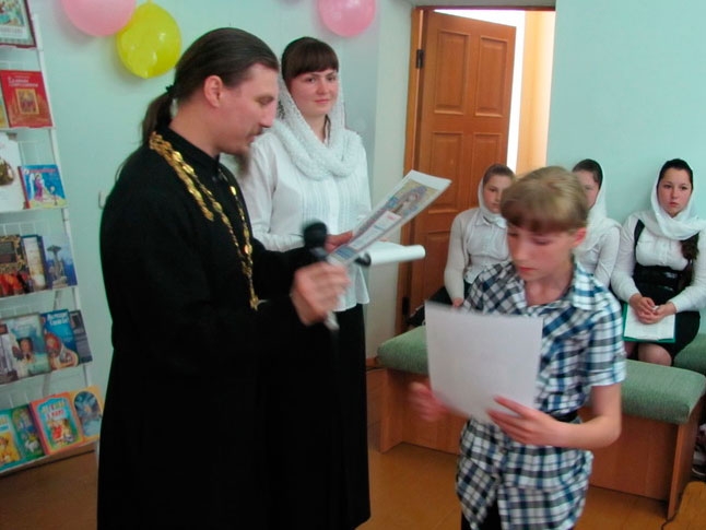 | 26 МАЯ 2014 (Понедельник) 13:53:11 22 мая в Новогрудской районной библиотеке состоялись III Кирилло-Мефодиевские чтения для школьников: подготовлены они были Сестричеством в честь святого Апостола Иоанна Богослова при участии сотрудников библиотек, учителей и учащихся города и района. Чтения были посвящены православной книге. Участники вспомнили о подвиге просветителей славян - святых Кирилла и Мефодия. Ученица СШ№2 Анна Патук подготовила сообщение о последователях равноапостольных братьев, которые в разное время создавали книги на Беларуси, в том числе, на Новогрудчине. Преподаватель истории СШ№7 Джемма Владимировна Невжинская поведала о создании в 1515 году на Новогрудчине «Пролога» – сборника житий святых на церковно-славянском языке. С презентацией выставки книг духовно-нравственного содержания, военной тематики, житийной литературы выступили сотрудники библиотек Наталья Вячеславовна Миселя и Ирина Владимировна Бузук. С инсценировкой «Пропало сердце» по книге Бориса Ганаго выступили учащиеся СШ №7. Воспитанники младшей группы Воскресной школы рассказали о том, через какие книги постигают они веру православную, исполнили радостные пасхальные песни. Пришли поздравить с праздником участников чтений и воспитанники детского сада №3 с мюзиклом «Муха-Цокотуха». Во время чтений исполнялись духовные песнопения, песни о добре и вере. Трогательно прозвучала песня «Журавли», которую все участники исполнили вместе, вспоминая погибших на войне защитников Отечества. Участникам чтений предложены были видеовикторины по Библии, вопросы были непростыми, но нашли своих знатоков. Все ребята получили задание на лето – подготовиться к игре-викторине по житиям святых Белой Руси, ведь в этом году празднуется 30-летие Собора Белорусских Святых. Ребятам, наиболее отличившимся в изучении факультатива «Основы православной нравственности», вручены были грамоты. / sobor.by/ (просмотров 5976) |