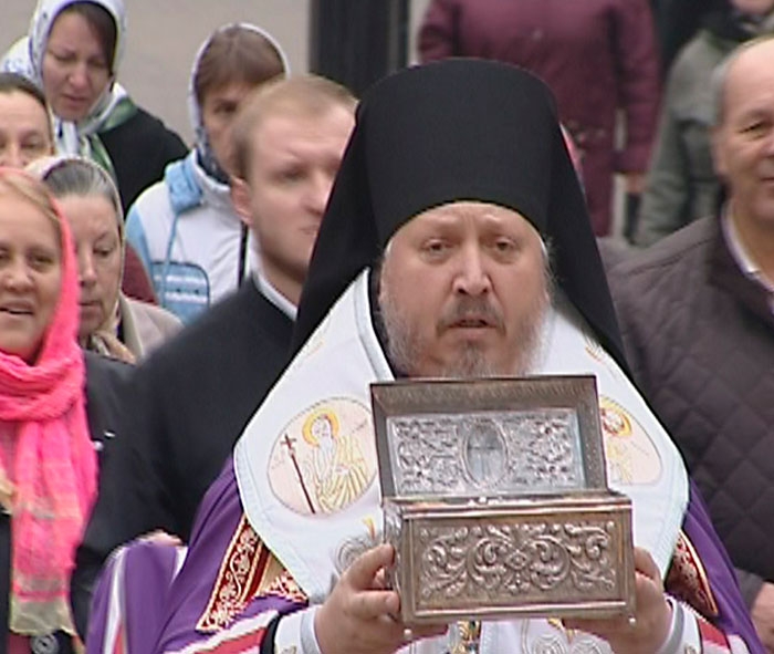 | | 16 ОКТЯБРЯ 2013 (Среда) 18:47:02 Ковчег с частицей Честнаго и Животворящего Креста Господня и частицами святых мощей великомученика Пантелеимона, преподобномученика Акакия Афонского, священномученика Харлампия, великомученика Феодора Тирона, святителя Григория Богослова, великомученицы Анастасии Узорешительницы, мучеников Раифских и Синайских прибыл 15 октября в Петро-Павловский кафедральный собор Гомеля.