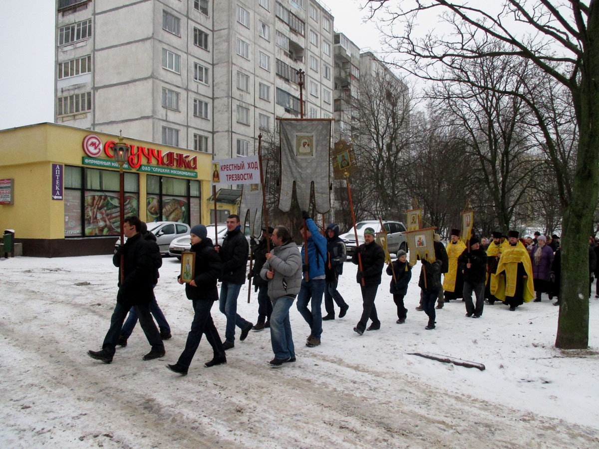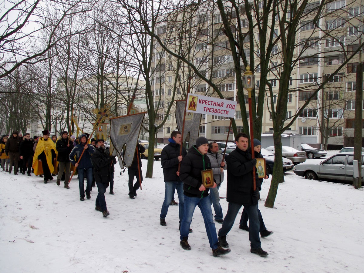 В этот день, несмотря на раннее утро, в минском приходе иконы Божией Матери «Неупиваемая Чаша» было многолюдно. Сегодня здесь возносились совместные молитвы о людях, страдающих от алкогольной и наркотической зависимости. Был отслужен торжественный молебен с чином изъявления обета трезвости, где сугубо молились о тех людях, кто с Божией помощью решил дать твердый отпор алкогольной угрозе и послужить примером трезвой и здоровой жизни для своих близких. После молебна по улицам микрорайона Слепянка был совершен Крестный ход трезвости. Традиция крестного хода связана с тем, что 1 января отмечается день памяти святого мученика Вонифатия, который является небесным заступником и ходатаем к Господу обо всех людях, страдающих от алкогольной и наркотической зависимости.