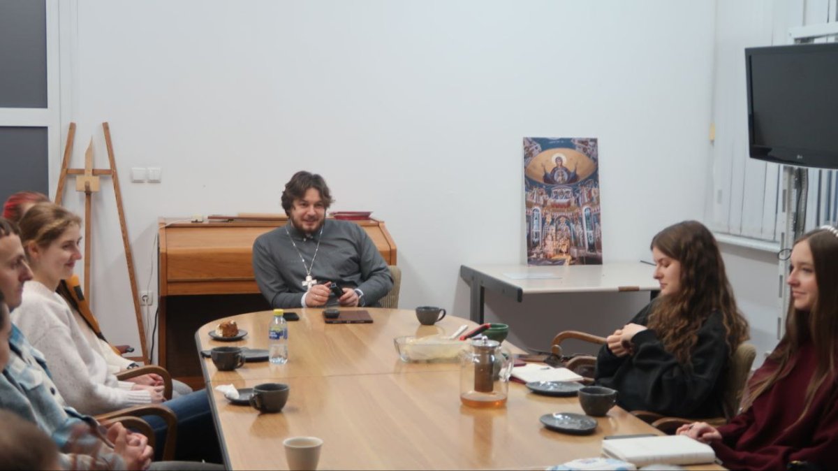 В ходе мероприятия с лекцией выступил священник Антоний Бондарев. Далее встреча продолжилась обсуждением и ответом вопросы. Молодые люди разговаривали и пили чай с пирогом, приготовленным одной из участниц объединения.