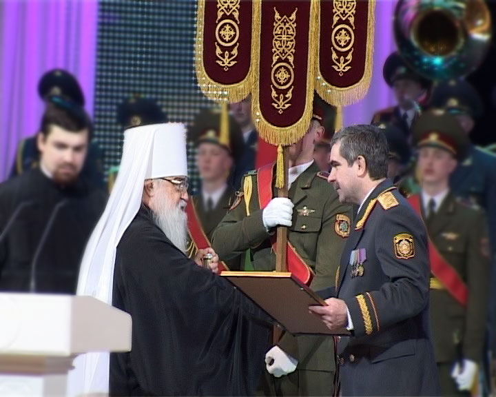 В приветственном слове по случаю празднования Дня милиции Владыка Филарет, обращаясь к сотрудникам и ветеранам милиции, сказал: «Наша страна процветает усилиями многих людей. Ваш труд – сохранение Отечества от посягательства злоумышленников - можно назвать крестным…» Передача хоругви была совершена по инициативе Министерства внутренних дел. На торжественном мероприятии, посвящённом Дню милиции, среди приглашенных гостей присутствовали архиепископ Витебский и Оршанский Димитрий, епископ Борисовский Вениамин, викарий Минской епархии, другие представители духовенства Белорусской Православной Церкви.