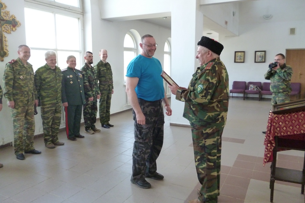 Праздничный пасхальный день совпал с юбилеем подъесаула Маслова О.В., которого поздравили в торжественной обстановке перед строем.