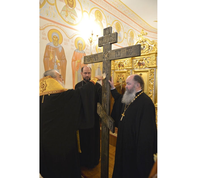 | | 13 ФЕВРАЛЯ 2013 (Среда) 18:46:38 13 февраля 2013 года настоятель минского Богоявленского прихода иерей Владимир Герасименко и клирик прихода священник Валерий Трухан доставили в домовой храм Минского епархиального управления вырезанный из лиственницы поклонный крест. Этот крест, высота которого составляет 2 м 40 см, был собственноручно изготовлен отцом Владимиром специально для экспедиции всемирно известного путешественника, а теперь уже и священника Фёдора Конюхова. Чин освящения креста совершил Митрополит Минский и Слуцкий Филарет, Патриарший Экзарх всея Беларуси.