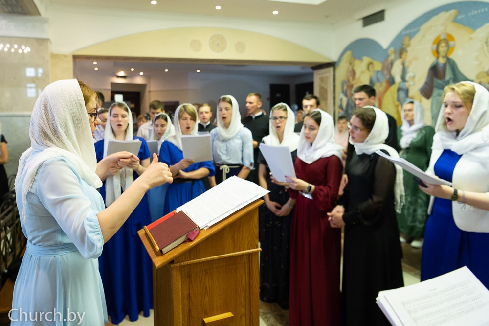 Богослужебные песнопения исполнил сводный хор Минского духовного училища под управлением Натальи Медведь.