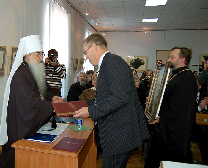В октябре месяце этого года исполняется 30 лет архипастырского служения на Беларуси Филарета, митрополита Минского и Слуцкого, Патриаршего экзарха всея Беларуси, ректора ГУО «Институт теологии имени святых Мефодия и Кирилла» Белорусского государственного университета. В связи с этим юбилеем прошло Торжественное заседание Совета Института теологии БГУ, посвященное чествованию ректора института Митрополита Филарета. Для участия в заседании Совета были приглашены министр образования Республики Беларусь Радьков А.М., уполномоченный по делам религий и национальностей при Совете Министров Республики Беларусь Гуляко Л.П., ректоры ряда высших учебных заведений республики. Фото предоставлено Институтом Теологии БГУ.