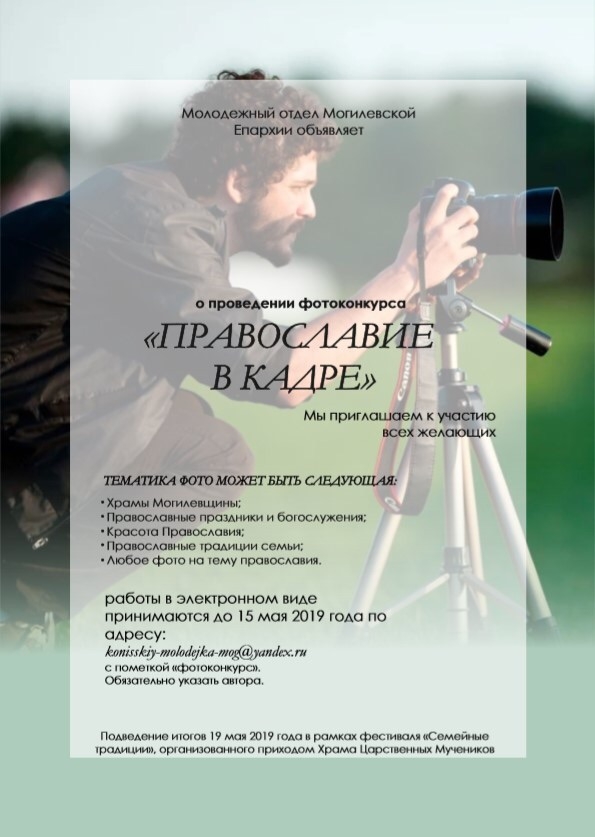 | | 25 АПРЕЛЯ 2019 (Четверг) 14:31:40 Молодёжный отдел Могилёвской епархии объявляет для всех желающих фотоконкурс "Православие в кадре".