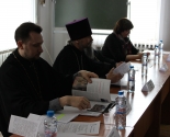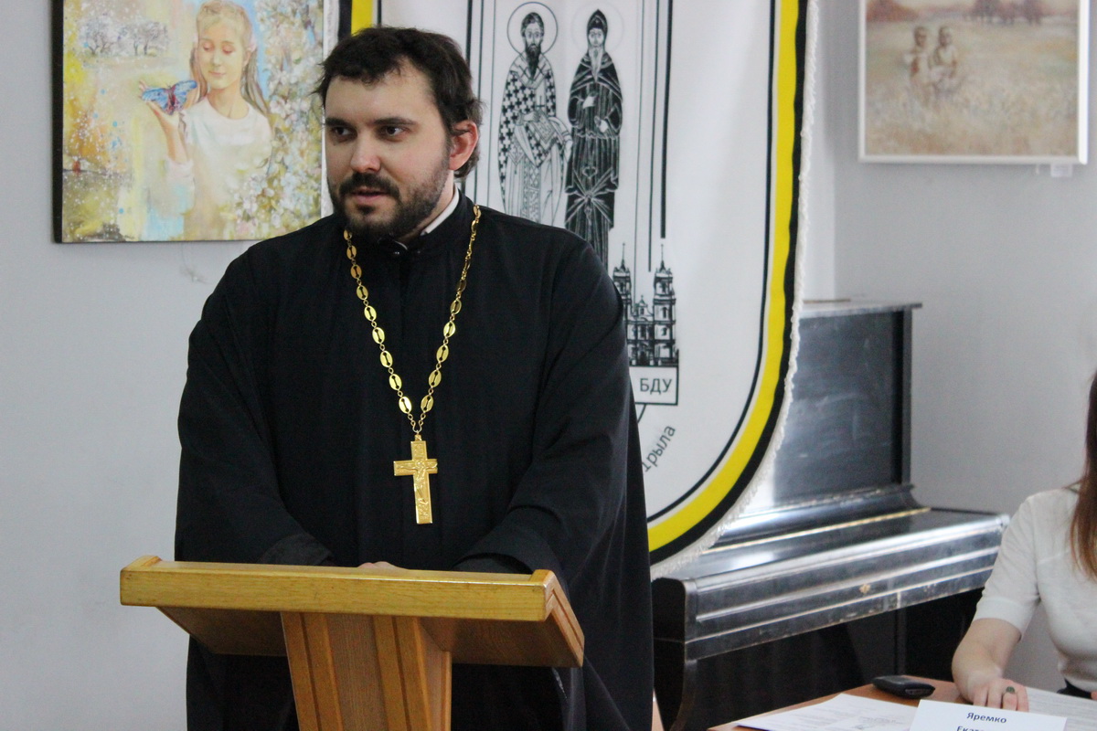Священник Святослав Рогальский, председатель МОО «Христианский образовательный центр имени свв. Мефодия и Кирилла, настоятель прихода храма святых равноапостольных Мефодия и Кирилла, познакомил слушателей с документом Русской Православной Церкви «Об участии верных в Евхаристии».