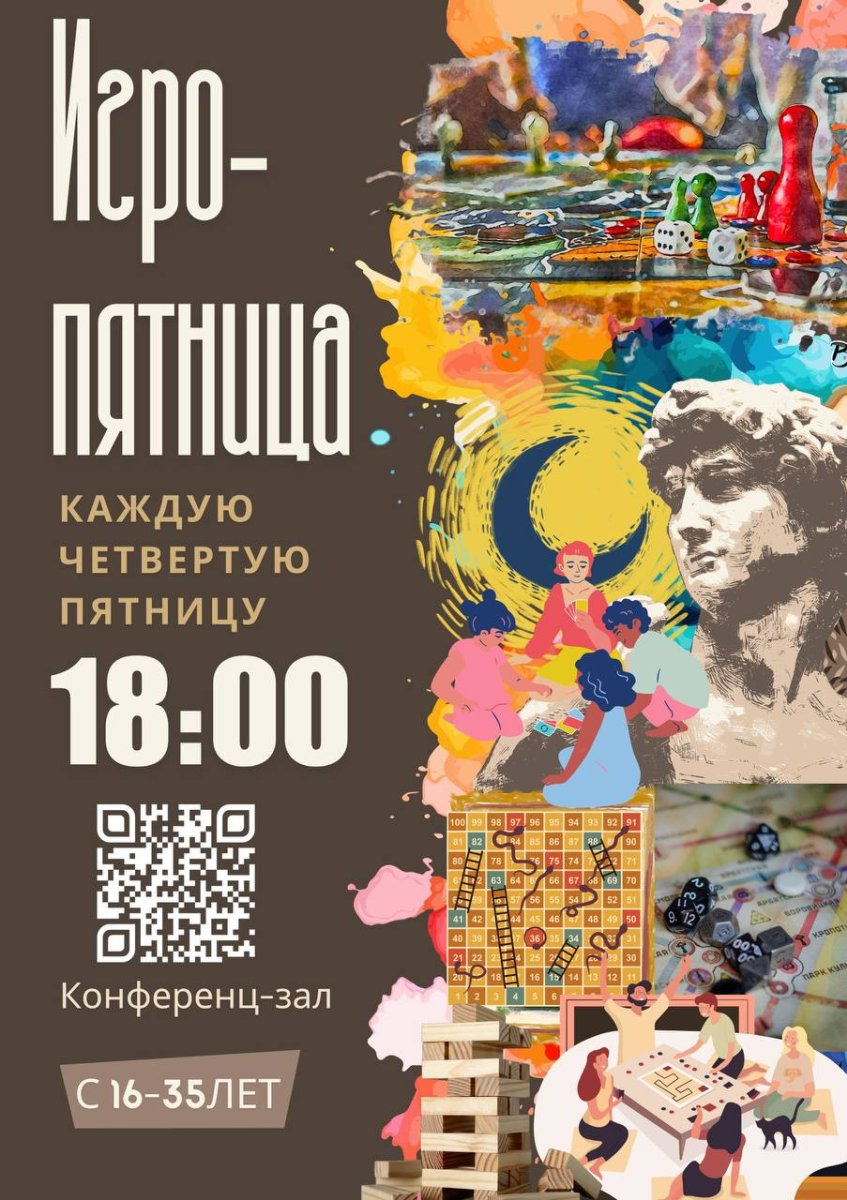 Каждую четвертную пятницу месяца в 18.00 - встречи в творческом формате "Игропятница", игры, настольные игры и чайная церемония.