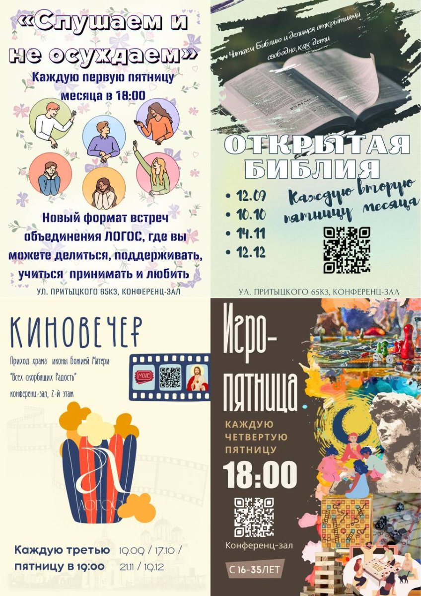 | | 1 СЕНТЯБРЯ 2025 (Понедельник) 10:45:31 Молодежно-просветительское объединение "ЛОГОС" прихода иконы Божией Матери "Всех скорбящих Радость" города Минска приглашает молодых братьев и сестер от 16-35 лет на встречи.