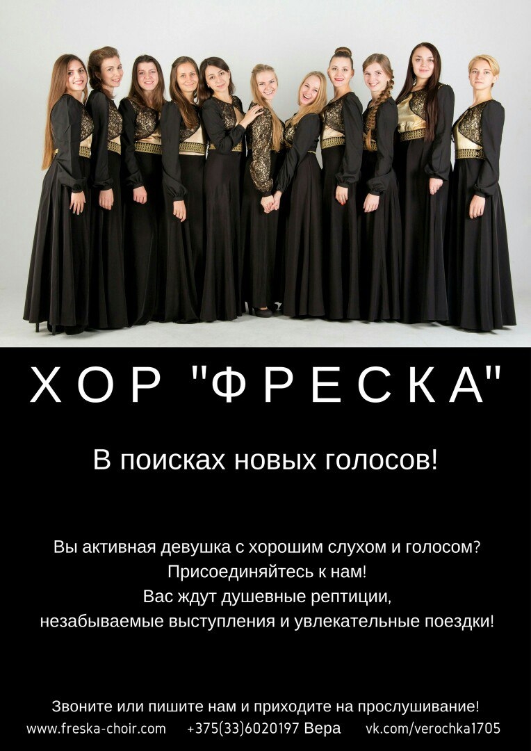 | 15 МАЯ 2017 (Понедельник) 15:37:36 Молодёжный камерный женский хор Фреска приглашает активных девушек с хорошим слухом и голосом присоединиться к хору: "Вас ждут душевные репетиции, незабываемые выступления и увлекательные поездки".Звонить по тел. +375 (33) 602 01 97, Вера. Справка: Молодёжный камерный женский хор "Фреска" был создан любителями хорового пения осенью 2012 года под управлением Кульбеда Алеси. В составе коллектива 16 человек. За свой небольшой период существования хор “Фреска” стал участником концертов в рамках православной выставки “Покровский кирмаш”, благотворительной акции Белорусской государственной академии музыки в детских домах и школах, посвящённых Новому году и Рождеству Христову, праздничного рождественского представления воскресной школы прихода “Всех Скорбящих Радость”, духовно-просветительского проекта "Голоса православной Беларуси", научно-практических конференций и творческих встреч. Коллектив не раз выступал с сольными концертными программами в Минске и в других городах Беларуси. При участии Молодёжного камерного женского хора "Фреска" были впервые исполнены 2 кантаты современных белорусских композиторов: Вячеслава Петько и Дарьи Боровик. За участие в 10-й духовно-просветительской выставке "Покровский кирмаш" коллективу объявлена благодарность от председателя Оргкомитета Православных выставок Савина А. А. и духовника выставок иерея Вл. Герасименко; коллектив награждён почётной грамотой за активное участие в концертной программе "Яко с нами Бог!" духовно-просветительского проекта "Голоса православной Беларуси"; Молодёжный хор "Фреска" награждён дипломом за участие в XIV фестивале православных духовных песнопений "Пойте Богу нашему, пойте" г. Дрогичин; также коллектив награждён дипломом за участие в XXI Международном фестивале восточнославянских колядок г. Тересполь. Молодёжный камерный женский хор "Фреска" является лауреатом I степени 2-ого Белорусского фестиваля-конкурса национальной хоровой музыки "Рэха" (2013г.), лауреатом I степени XVI Международного фестиваля "Коложский Благовест" (2015 г.), лауреатом I степени Международного фестиваля "Магутны Божа" (2015г.), лауреатом I степени "22 Międzynarodowego Festiwalu Kolęd i Pastorałek im. ks. Kazimierza Szwarlika" w Będzinie. В репертуаре коллектива русская и зарубежная классика, обработки белорусских, русских, польских, болгарских песен, духовная музыка, музыка современных композиторов. Группа хора вконтакте >> / sobor.by/ (просмотров 3347) |