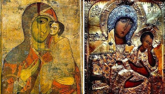 ДВА СПИСКА СТАРОРУССКОЙ ИКОНЫ ПРЕСВЯТОЙ БОГОРОДИЦЫ. ФОТО: WWW.PRAVOSLAVIE.RU