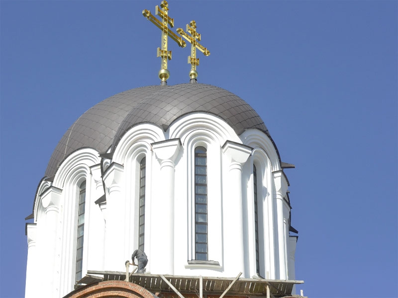 «Ведутся кровельные работы по защите здания от атмосферных осадков, проводятся подготовительные мероприятия в теплоузле для организации строительно-монтажных работ, также проложены участки трубы ливневой и дренажной канализации для обеспечения водопонижения, - говорит строитель. - Возле куполов осуществляются завершающие мероприятия по наружной отделке стен, которая обеспечит в непогоду надёжную защиту кирпичной кладки».