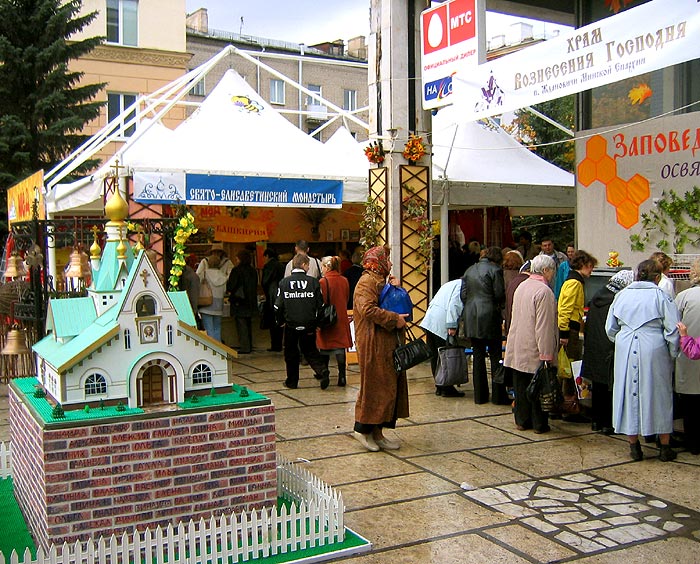 В этом году Ярмарка размещается в Республиканской художественной галерее «Палац мастацтваў» по адресу г. Минск, ул. Козлова 3 (ст. метро «Площадь Победы»). В программе выставки-ярмарки: 1. Выставка икон и церковной утвари, духовной литературы, изделий народного творчества. 2. Ежедневные кинолектории с беседами священников – сеансы в 12:00, 14:00, 16:00. 3. Семинар «Преподавание курса «Основы православной культуры» - 10 октября в 18:00 - вводная лекция на выставке; 11, 12 октября с 10:00 до 18:00 в зале Академии последипломного образования. 4. Ежедневно с 17:00 до 18:30 культурно-просветительская программа ведущих любительских коллективов г. Минска, лауреатов и дипломантов I-го городского фестиваля современной христианской музыки «Благовест» и II-го городского фестиваля инструментальной мызыки «Музыкальный калейдоскоп столицы». 5. Мастер-классы по звонарному и декоративно-прикладному искусству. 6. Выставки художественных работ. Цель выставки-ярмарки: - способствовать возрождению православной культуры в Беларуси; - способствовать восстановлению храмов и монастырей, возрождению церковных ремёсел, развитию социальной и просветительской работы церкви; - знакомить посетителей ярмарки с традициями православного образа жизни и быта, представить лучшие образцы церковной утвари и литературы, певческого искусства; - способствовать духовно-нравственному просвещению и воспитанию людей. Колокольный благовест выпускников школы звонарей возвестил начало работы выставки. Выставка-ярмарка работает ежедневно с 7 по 15 октября с 10:00 до 20:00. (просмотров 2374)