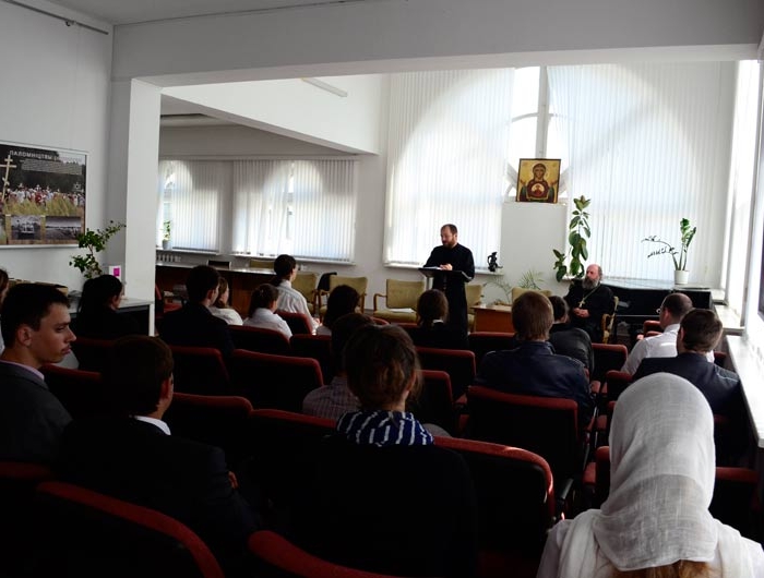 | 9 СЕНТЯБРЯ 2013 (Понедельник) 16:34:25 Первые занятия в Минском духовном училище, расположенном на территории Центра духовного просвещения и социального служения «Всех скорбящих Радость», были предварены торжественной Божественной литургией в Свято-Евфросиниевском храме. За богослужением в этот день пел хор учащихся МинДУ. Молебен на начало учебного года возглавил настоятель прихода протоиерей Игорь Коростелёв в сослужении священнослужителей из числа преподавателей училища и клириков прихода. Этот учебный год для духовного учебного заведения станет знаковым – весной 2014 года состоится юбилейный 25-й выпуск МинДУ. Как отметили в администрации учебного заведения, к юбилейной дате будет приурочен ряд мероприятий. Так, на святках здесь состоится первый Рождественский фестиваль, планируется выпуск юбилейных буклетов. И конечно, новый учебный год, как и предыдущие, будет наполнен новыми встречами с интересными людьми и множеством выступлений хора училища. Справка: Минское духовное училище - учебное заведение, осуществляющее подготовку специалистов в области церковно-певческого дела [певчих, псаломщиков, регентов] для приходов Православной Церкви. Училище открыто по ходатайству Митрополита Минского и Белорусского Филарета [Вахромеева] Священным Синодом Русской Православной Церкви 30 октября 1988 года. 10 января 1989 года начало работу как одногодичные курсы псаломщиков, в 1995 году преобразовано в двухгодичное учебное заведение, в 1998 году – в трёхгодичное. В училище изучается ряд богословских предметов: Библейская история Ветхого и Нового Заветов, Богослужебный устав, Катехизис, Церковно-славянский язык, Священное Писание и Православное Богослужение, Литургика, История Церкви, предметы Церковно-певческого обихода, – а также специальные дисциплины, необходимые для музыкального развития учащихся: Теория музыки, Сольфеджио, Мелодическое пение, Гармония и аранжировка, Хороведение, Дирижирование, Хор, Вокал, Фортепиано, – и другие. Всего более 20 предметов. Воспитанники духовного училища во время обучения проходят Богослужебную практику в храме: поют или управляют хором под наблюдением опытных преподавателей. В Минском духовном училище работают преподаватели с высшим богословским или музыкальным образованием. Среди них 3 кандидата богословия, выпускники Московской Духовной Академии; 3 выпускника Минской Духовной Семинарии и Академии; 1 кандидат искусствоведения, 4 бакалавра, преподаватели высшей категории, опытные руководители хоров Минской Епархии. Духовником училища является иерей Александр Пронин – клирик прихода храма иконы Божией Матери «Всех скорбящих Радость» г. Минска. В мае 2000 года хор Минского духовного училища стал лауреатом V международного фестиваля православных песнопений в г.Минске; в апреле 2007 года на IХ международном фестивале православных песнопений в г.Минске занял 1-е место в категории «Хоры духовных учебных заведений», в апреле 2009 года на Х международном фестивале православных песнопений в г.Минске занял 3-е место. Училище посещали с лекциями Председатель Церковного Суда Кипрской Православной Церкви протопресвитер Георгий Антонио, настоятель Лондонского православного кафедрального собора протоиерей Михаил Фортунато [Сурожская епархия], вокальный ансамбль Парижского кафедрального собора под упра