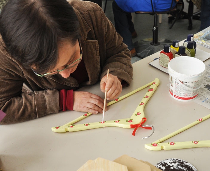 Сотрудники социальных мастерских прихода Иконы «Всех скорбящих Радость» осваивают производство новых изделий. Так, уже готовы сумки с оригинальными изображениями, вешалки с росписью, декоративные скворечники. В настоящее время активными темпами идёт изготовление кормушек для птиц к зимнему сезону.
