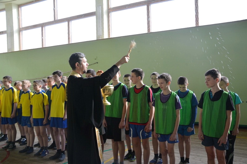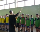 После молитвы на начало всякого доброго дела благочинный церквей Слонимского округа протоиерей Вадим Петлицкий рассказал гостям из Новогрудка о духовной жизни слонимских кадетов и благословил проведение товарищеского турнира по баскетболу и мини-футболу.