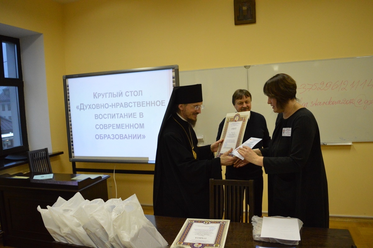 | 4 ДЕКАБРЯ 2019 (Среда) 22:08:09 Синодальный отдел религиозного образования подвёл итоги интернет-конкурса методических разработок "Кладезь мудрости". В конкурсе приняли участие 56 педагогов из разных регионов Беларуси. Среди них воспитатели учителя, преподаватели вузов, методисты епархиальных отделов, преподаватели воскресных школ.Почетные грамоты и дипломы авторам лучших работ вручил Председатель Синодального отдела религиозного образования епископ Борисовский и Марьиногорский Вениамин. "Меня радует, что конкурс "Кладезь мудрости", который был объявлен нашим отделом впервые, собрал столько неравнодушных людей,- отметил владыка Вениамин, - Это только начало большой работы, в которой нет соперников. Вся большая работа, проделанная вами, должна быть систематизирована и расширена". В числе победителей Анашкевич Наталья Николаевна, учитель Государственного учреждения образования "Средняя школа № 11 г. Лиды", занявшая первое место в номинации "Внеклассные интеллектуальные мероприятия по духовно-нравственному воспитанию"; Василевская Светлана Ивановна, воспитатель государственного учреждения образования "Ясли-сад №77 г. Гродно", занявшая первое место в номинации "Духовно-нравственное воспитание в дошкольном учреждении"; Громыко Надежда Викторовна, учитель Государственного учреждения образования "Средняя школа №3 г. Новогрудка", занявшая первое место в номинации "Преподавание основ православной культуры в начальной школе"; Золотова Алла Николаевна, учитель Государственного учреждения образования "Новогрудская специальная общеобразовательная школа-интернат для детей с тяжёлыми нарушениями речи, нарушениями психического развития, трудностями в обучении", занявшая первое место в номинации "Преподавание основ православной культуры в средних и старших классах"; Клок Наталья Вячеславовна, учитель государственного учреждения образования "Средняя школа № 11 г. Лиды", занявшая первое место в номинации "Внеклассные мероприятия по семейному воспитанию"; Коваленко Елена Михайловна, учитель "Учебно-педагогического комплекса Бакштовский детский сад – средняя школа" Ивьевского района Гродненской области, занявшая первое место в номинации "Внеклассные мероприятия по духовно-нравственному воспитанию"; Кокош Ирина Владимировна, старшая сестра Сестричества в честь святого Апостола Иоанна Богослова в г.Новогрудке, занявшая первое место в номинации "Внеклассные мероприятия по семейному воспитанию"; Кравцова Ольга Андреевна, учитель государственного учреждения образования "Ельская районная гимназия" г.Ельска Гомельской области, занявшая первое место в номинации "Духовно-нравственное воспитание на уроке"; Мартынова Лариса Аркадьевна, старший преподаватель ГУО "Минский областной институт развития образования", занявшая первое место в номинации "Лучший сборник методических разработок по семейному воспитанию"; Сенько Дарья Олеговна, методист Отдела религиозного образования и катехизации Туровской епархии, занявшая первое место в номинации"Лучшая методическая разработка для воскресной школы". Дипломами награждены: Сураго Тамара Николаевна, учитель государственного учреждения образования "Валевский учебно-педагогический комплекс детский сад-средняя школа" Новогрудского района Гродненской области, занявшая второе место в ном