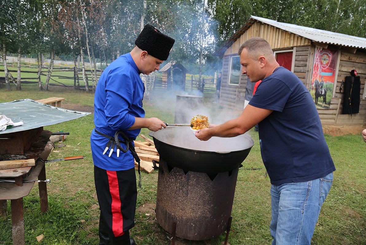 | 29 АВГУСТА 2020 (Суббота) 12:55:40 Первый казачий фестиваль РОО "Белорусское казачество" состоялся в поселке Пашковичи под Минском.Также в этот день, 22 августа, прошел Круг Минского областного казачьего округа. Мероприятия возглавил Верховный Атаман Республиканского общественного объединения "Белорусское казачество" казачий генерал Николай Дмитриевич Улахович. Участие в форуме приняли казаки Минского областного казачьего округа, Минского городского казачьего округа, Борисовского казачьего отдела, Могилевского казачьего отдела, Столинского казачьего отдела, а также приглашенные казаки из других казачьих округов Беларуси. На проходившем Круге было принято решение об объединении Минского городского казачьего округа и Минского районного казачьего отдела. На Круге обсудили организационные вопросы дальнейшей жизни организации РОО "Белорусское казачество", ряду казаков были присвоены очередные казачьи чины, наиболее отличившиеся казаки были отмечены юбилейными медалями и почетными грамотами "Белорусского казачества". В рамках казачьего фестиваля были организованы выставки истории казачества, казачьих наград, был оборудован тир. Одними из самых зрелищных мероприятий стали соревнования по рубке шашкой, спортивные мероприятия, казачьи игры и забавы. Победителям соревнований были вручены призы. На оборудованных загонах продемонстрировала свое мастерство в конной езде кандидат в мастера спорта Республики Беларусь Виктория Храмцова. После этого все желающие смогли проехать верхом на лошади. Было организовано и катание детей, которых на фестивале было очень много. Рядом проходила выставка кованных сувениров казака Ивана Бузука из города Барановичи. На фестивале прошла также презентация вновь образованного белорусского казачьего взвода "Терек". Казаками взвода были представлены элементы снаряжения, экипировки и пневматического стрелкового оружия, необходимого для проведения мероприятий. Изюминкой фестиваля стало выступление казачьего коллектива "Казаки Полесья". Казачьи народные и современные песни в живом исполнении особенно понравились зрителям. На фестивале также выступали ансамбль "Любо Братцы" Борисовского городского казачьего отдела, а также лауреат международных конкурсов артистов эстрады Сандра Зыликова и молодая казачка Екатерина Казимирская. Для гостей фестиваля и казаков была оборудована полевая кухня, где каждый смог отведать казачьи блюда на свежем воздухе. Автор текста и фото Владимир Громыко. / sobor.by/ (просмотров 2676) |