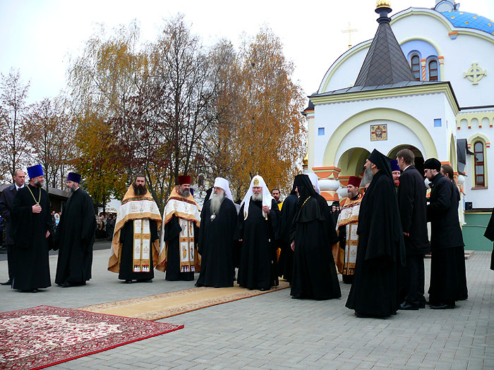 | | 25 ОКТЯБРЯ 2008 (Суббота) 16:31:30 Глава Русской Православной Церкви также побывал в церкви в честь иконы Божией Матери «Державная», расположенной рядом с обителью. В алтаре храма Святейший подписал антиминс, прочитал заключительную молитву чина освящения церкви и окропил стены святой водой. Затем Патриарх обратился к присутствующим. Предстоятель сказал: «Когда находишься в этом дивном храме, начинаешь понимать, что эта красота будет помогать тем, кто находится в болезни и скорби. Чудом Божиим трудами и заботой многих людей создана эта обитель, которую можно назвать обителью милосердия». «Желаю, чтобы все больше людей, видя вашу любовь, приходили в церковь Христову. Творите добрые дела, и Господь воздаст вам, и вы достучитесь до тех, кто еще на пути к вере», - заключил Предстоятель Русской Церкви. Как сообщает наш корреспондент, Святейший подарил храму напрестольный крест. Духовник обители протоиерей Андрей Лемешонок принес в дар Алексию II икону Божией Матери «Державная». Монастырь святой преподобномученицы великой княгини Елизаветы был образован летом 1999 года в поселке Новинки Минского района. Основой для общины послужило одноименное православное сестричество, которое с 1996 года опекало Республиканскую клиническую психиатрическую больницу и городскую клиническую больницу № 2. В свою очередь, церковь в честь иконы Божией Матери «Державная» строилась как приходская. В храме будут совершаться праздничные службы и Таинство Венчания. Нижняя церковь предназначена для совершения Таинства Крещения: в середине храма расположен баптистерий, украшенный резьбой по камню и мозаикой.