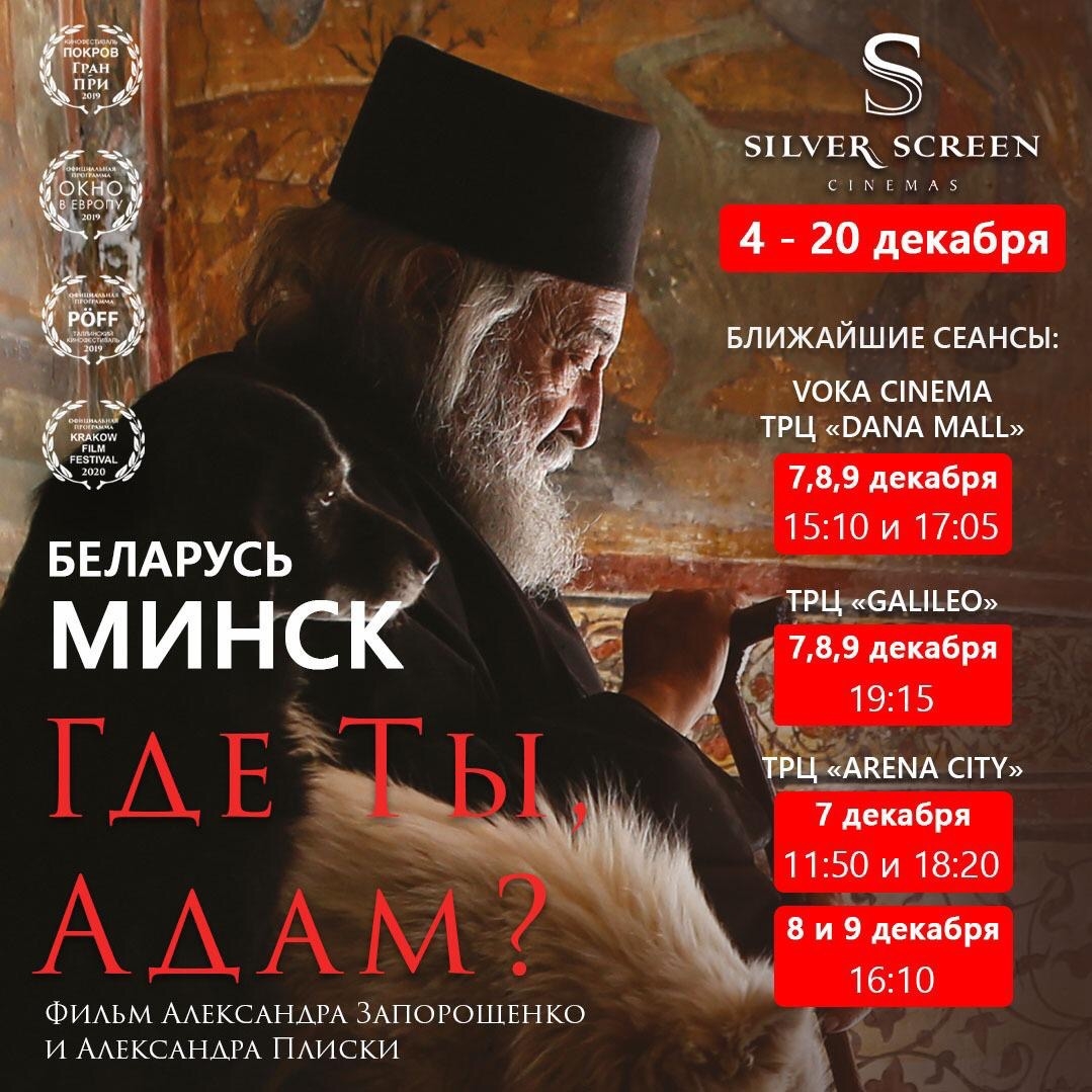 | | 8 ДЕКАБРЯ 2020 (Вторник) 13:36:16 С 4 по 20 декабря документальный фильм "Где ты, Адам?" можно посмотреть в сети кинотеатров Silver Screen в Минске.