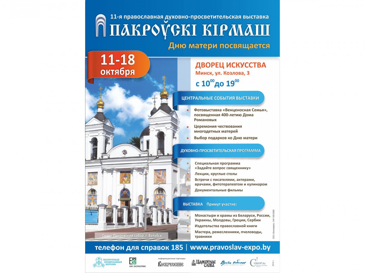 Международная духовно-просветительская выставка «Пакроускi кiрмаш» распахнет свои двери 11 октября, накануне Дня матери, который приурочен к празднику Покрова Пресвятой Богородицы. Этот форум, организованный Белорусской Православной Церковью и выставочным обществом «Экспосервис» и ставший уже традиционным, пройдет во Дворце искусств.