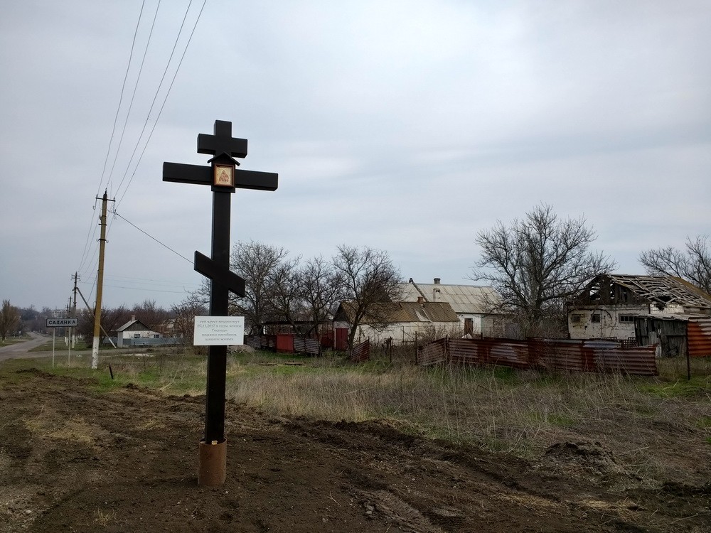 В посёлке Саханка храма не было, порядка пятнадцати лет он был оформлен только на бумаге. Создание храма в честь св. Георгия Победоносца, началось именно с началом военных действий, крайне трудным для людей периодом жизни. Возрождение храма и приходской жизни стало возможным при поддержке белорусов. Приходом иконы "Всех скорбящих Радость" были переданы иконы и богослужебные предметы, богослужебные книги, чтобы можно было начать совершать богослужения. Прихожанами прихода были переданы книги для приходской библиотеки, которой сегодня могут пользоваться и получать духовную поддержку жители обстреливаемых посёлков Саханка, Сергеевка, Ленинское, Заиченко, Новотаврия.