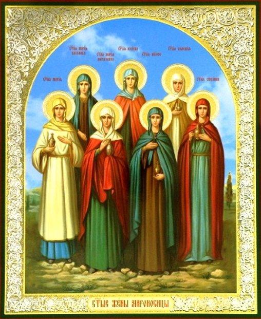 Святые жены не уступают в мужественном самоотвержении Иосифу. Присутствовав при погребении в пяток, они не сочли позволительным в субботу – в день покоя – нарушить тот покой, которым покоилось в священном мраке и затворе гробовой пещеры тело Господа. Жены намерены были излить свое усердие к Господу излиянием мира на Его тело. Возвратившись с погребения в пяток, они немедленно купили значительное количество благоуханных составов и ожидали наступающего дня по субботе, именуемого днем недельным, воскресным. В этот день, лишь воссияло солнце, благочестивые жены направились ко гробу. На пути они вспомнили, что ко входу во гроб привален большой камень. Это озаботило их, и жены начали говорить между собою: кто отвалит нам камень от дверей гроба (Мк. 16: 2)? Камень был велий зело. Пришедши ко гробу, они, к удивлению своему, увидели камень отваленным. Отвалил его светоносный, сильный ангел: он, по воскресении Господа, снисшел с неба ко гробу, вместившему Невместимого небом, поразил ужасом стражей, вместе и сокрушил печать и отодвинул тяжелый камень. Он сел на камне, ожидая пришествия жен. Когда они пришли, он возвестил им о воскресении Господа, повелев сказать о том апостолам. За усердие свое к Богочеловеку, за решимость воздать почесть всесвятому телу, которое охраняла воинская стража, за которым зорко наблюдала ненависть Синедриона, святые жены, первые из человеков, получили точное и верное сведение о воскресении Христа, соделались первыми и сильными проповедниками воскресения, как выслушавшие известие о нем из уст ангела. У всесовершенного Бога нет лицеприятия: все человеки равны пред ним, и тот из человеков сподобляется особенных даров Божиих, в особенном обилии и духовном изяществе, который с большим самоотвержением устремится к Богу.